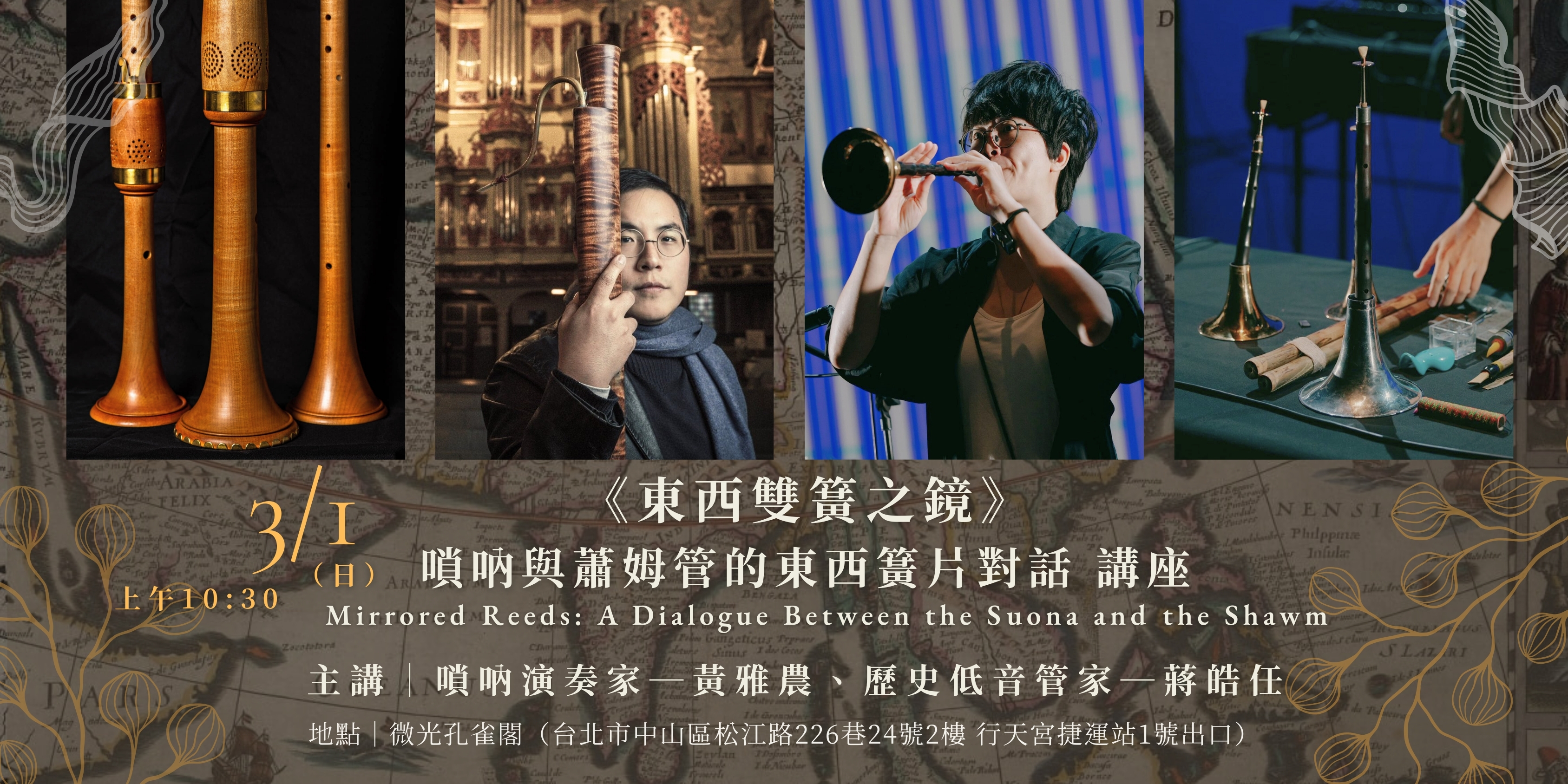 兩位講者將分別從嗩吶與西方雙簧片樂器的第一線演奏與研究經驗出發,循著聲學結構、樂器歷史與演奏實踐的脈絡,帶領觀眾進入一場從伊斯蘭國家,跨越歐亞大陸傳遍世界的「雙簧片對話」。