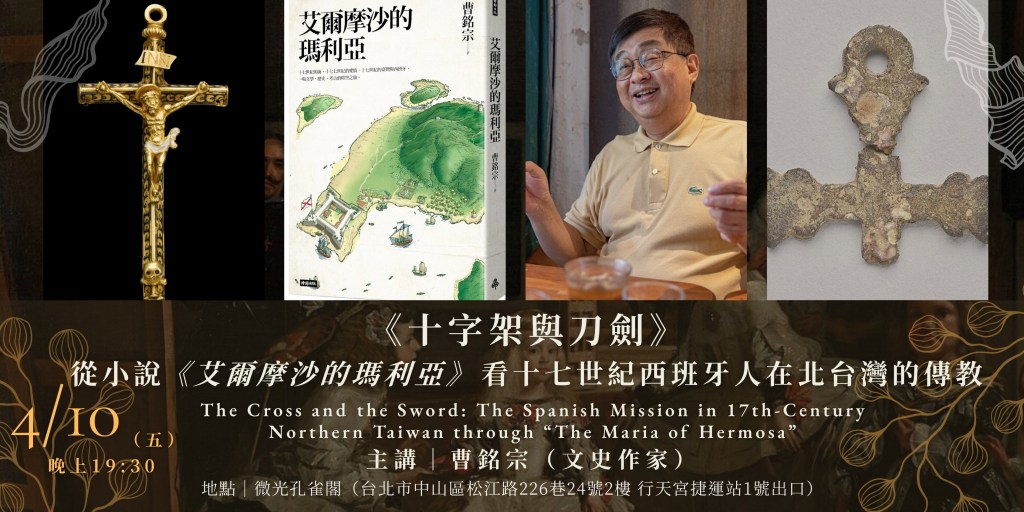 本講座邀請出身臺灣基隆的作家、文化記者、文史研究者─曹銘宗,以他出版的十七世紀西班牙人在台灣為背景的歷史小說 《艾爾摩沙的瑪利亞》為中心,介紹西班牙時代台灣在西班牙時期宗教文化的背景。
